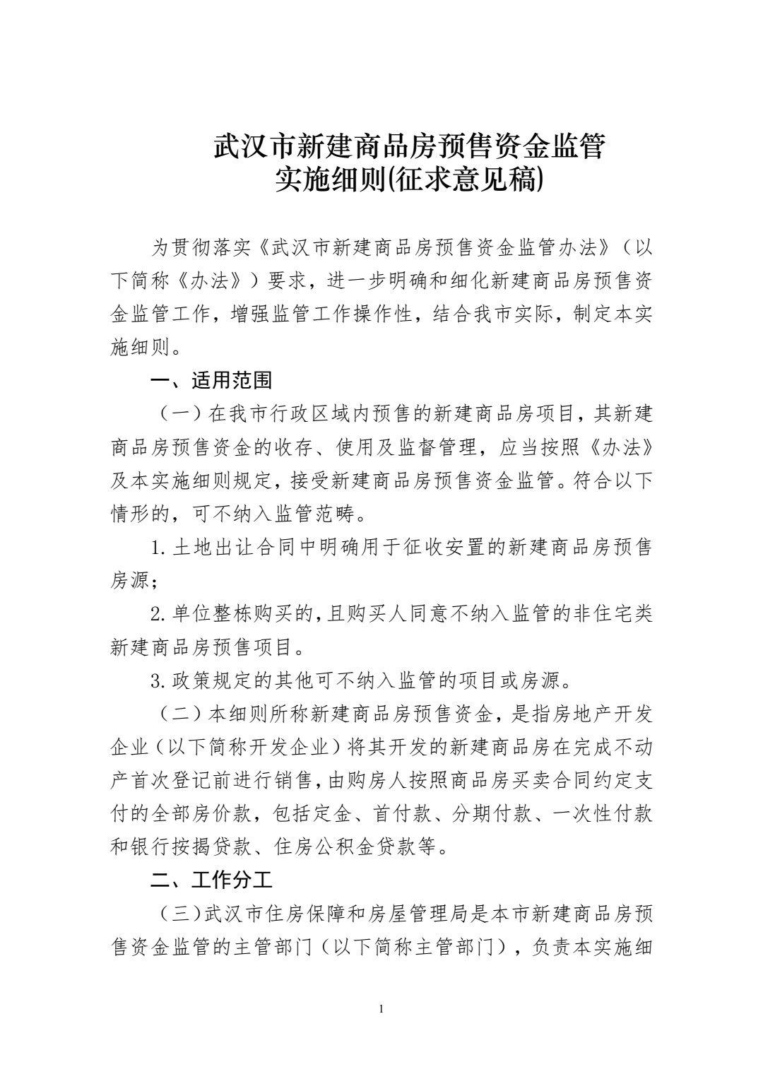 3月25日,武汉市住房保障和房屋管理局发布关于征求《武汉市新建商品房预售资金监管实施细则(征求意见稿)》意见的公告。公告显示:
