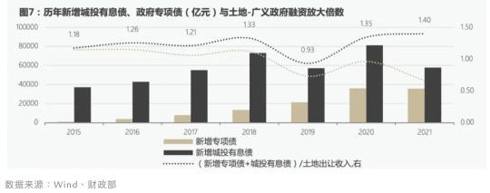 房地产对财政的影响并不局限在通过税收和土地出让决定预算内收入。另一个重要影响在于,近20余年来,地方政府无论是通过预算外的城投平台还是预算内的专项债券开展融资,土地收入以及存量土地的预期价值都是最重要的融资基础。
